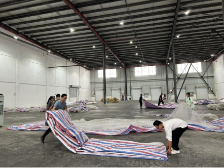 倉(cāng)庫(kù)中,黨員干部職工充分發(fā)揚(yáng)不怕臟、不怕累的優(yōu)良作風(fēng)和團(tuán)結(jié)協(xié)作的良好精神風(fēng)貌,兩兩配合清理薄膜、疊彩條布、清掃垃圾,有效提升庫(kù)房的使用價(jià)值,同心協(xié)力營(yíng)造整潔有序的生產(chǎn)環(huán)境。